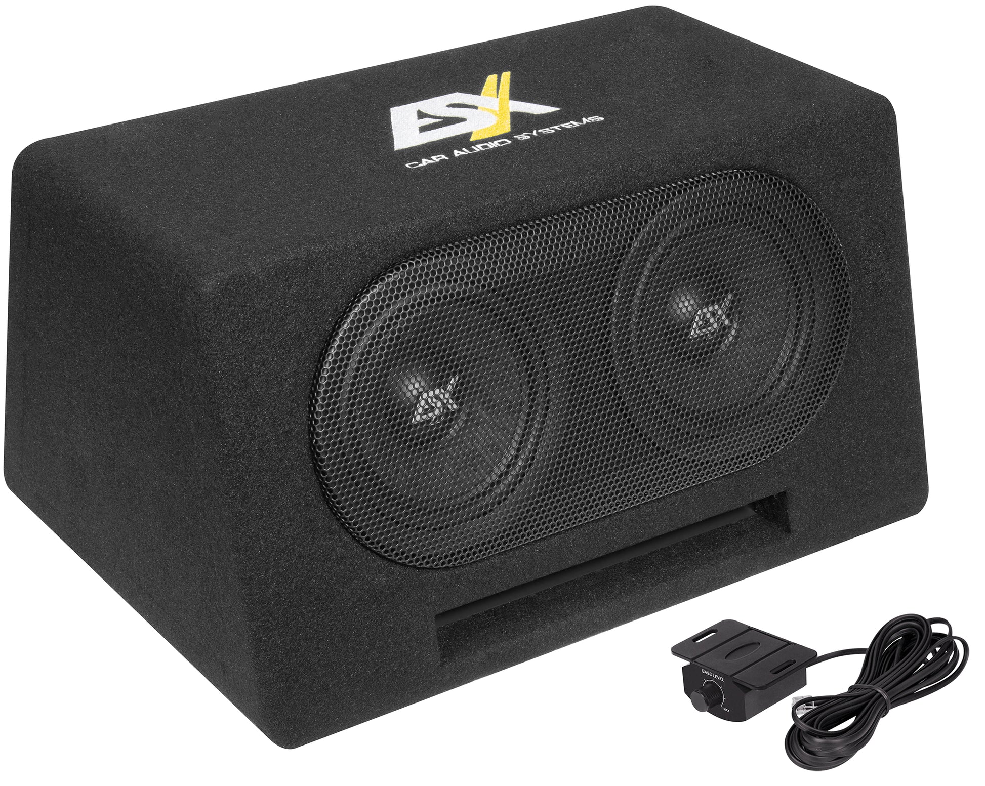 6,5" (16,5 cm) Dual Aktiv-Bassreflex-Box #ZLeistung 225 W RMS / 450 W max. mit EPS Pro#Z• Class D Mono-Verstärker • Wirkungsgrad bis 84% #Z• Lowpass 40-120 Hz • 12 dB Flankensteilheit #Z• Subsonic 5-35Hz • 12dB Flankensteilheit #Z• EPS Pro mit 10R / 150R / 600R schaltbaren Widerständen#Z• Phasenschalter 0°/180° • Bass-Boost 0-6 dB @ 45 Hz#Z• Cinch & High Level Inputs • Auto Turn-On Signal, DC, Remote#Z• Start Stopp 5 sec. bis 7V • Input 15 od. 40 Volt schaltbar #Z• Limiter Funktion • inkl. Basspegel-Kabelfernbedienung #Z• 6,5" (16,5 cm) Dual-Bassreflex-Box • gesticktes ESX Logo#Z• 2 Subwoofer mit je 38 mm VC • geschöpfte Membranen