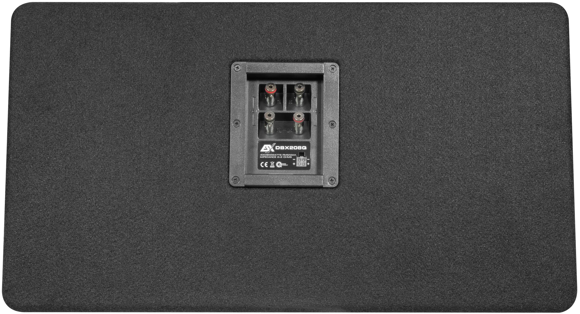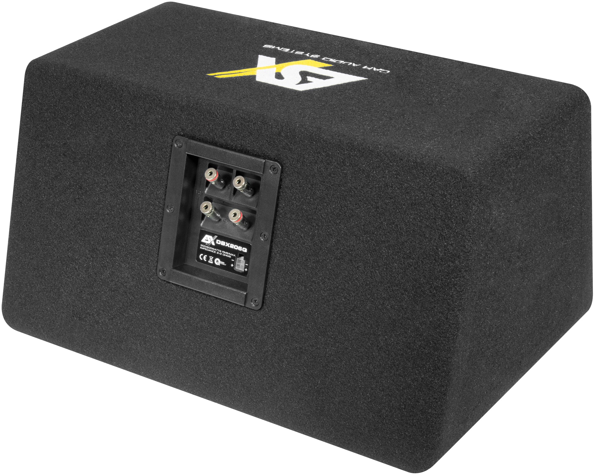 Leistung 300 W RMS / 600 W max. • Impedanz 2 + 2 Ω#Z• 6,5" (16,5 cm) Dual-Bassreflex-Box • gesticktes ESX Logo#Z• 2 Subwoofer mit je 38 mm VC • geschöpfte Membranen#Z• Massive 24 mm MDF Front mit eingelassenen Subwoofern#Z• Quick-Connect Anschlussterminal • Schutzgitter • 12,9 kg