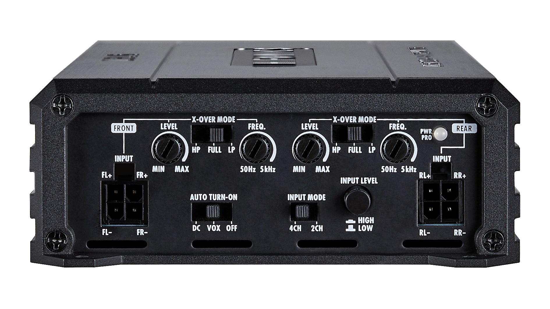 • 4 x 115 / 175 W RMS @ 4 / 2 Ω (Class D) oder 2 x 350 W RMS gebrückt @ 4 Ω• HP/LP 50-5000 Hz (FRONT)